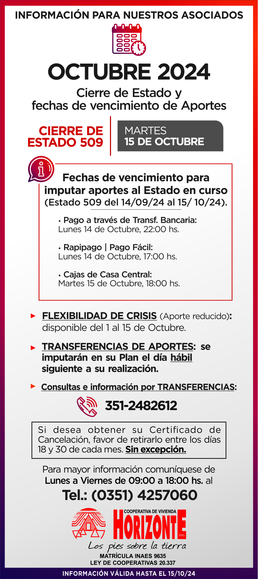 FECHAS IMPORTANTES OCTUBRE 2024