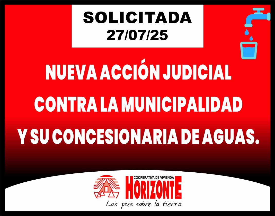 COOPERATIVA HORIZONTE INTERPUSO UNA NUEVA ACCIÓN JUDICIAL CONTRA LA MUNICIPALIDAD DE CÓRDOBA Y SU CONCESIONARIA DE AGUAS