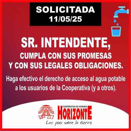SOLICITADA: Sr. INTENDENTE, CUMPLA CON SUS PROMESAS Y CON SUS LEGALES OBLIGACIONES.
