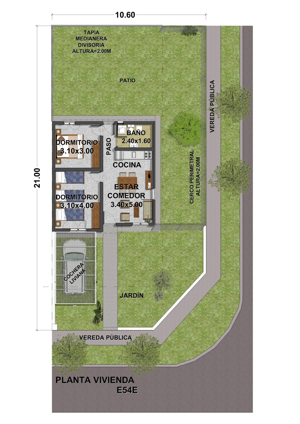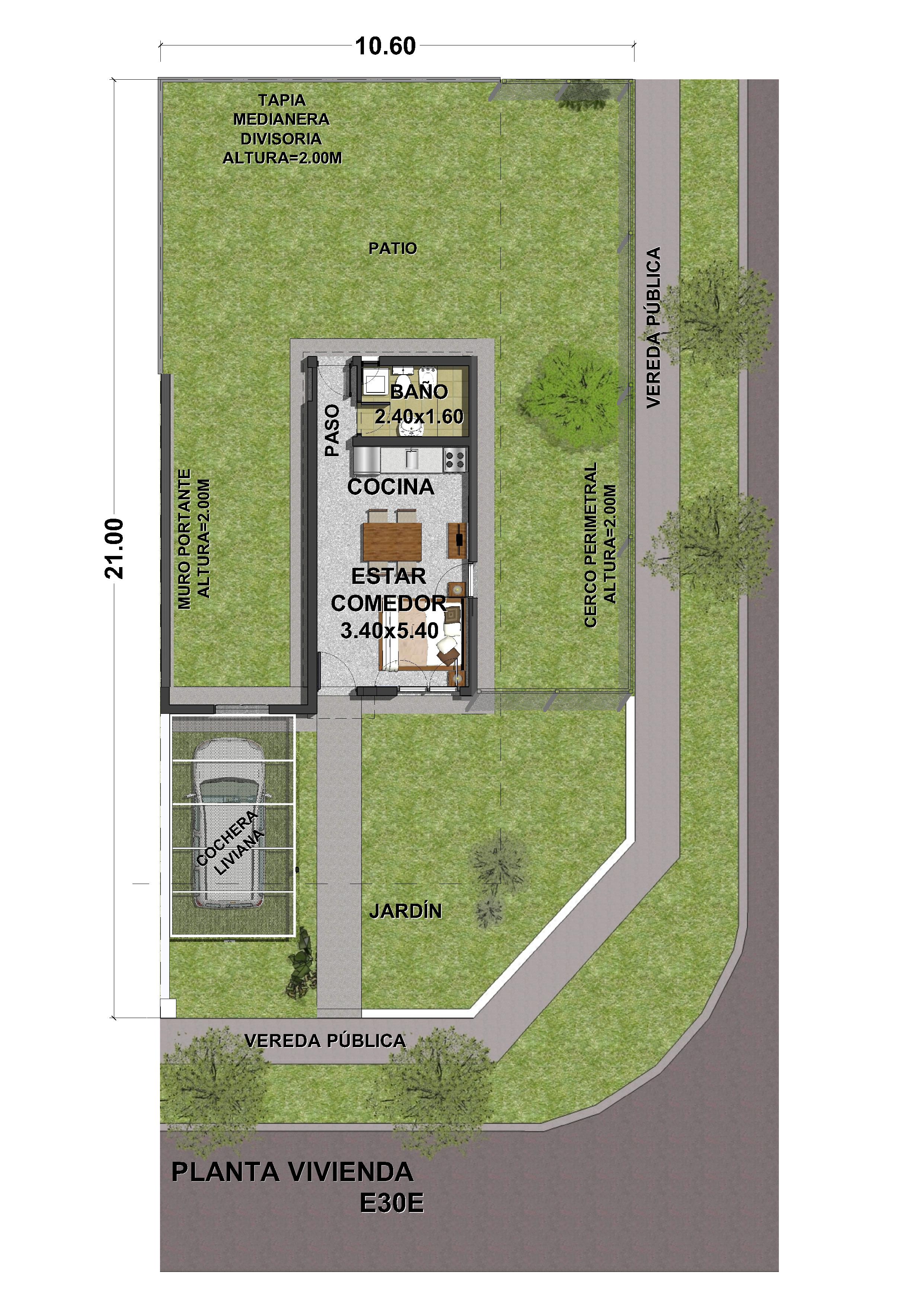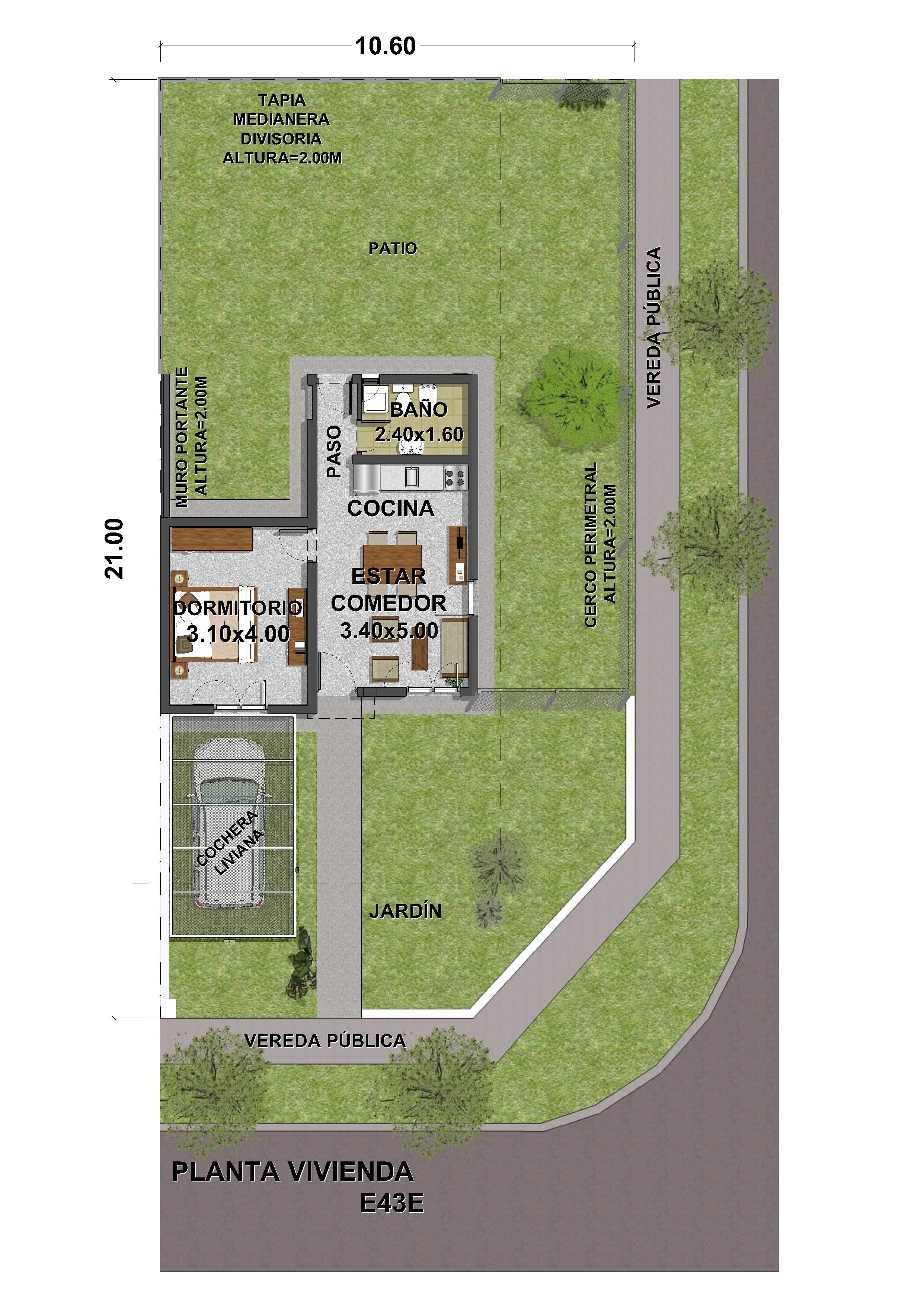 . Incluye cochera liviana y tapia medianera divisoria con tecnología constructiva a definir por Cooperativa.
